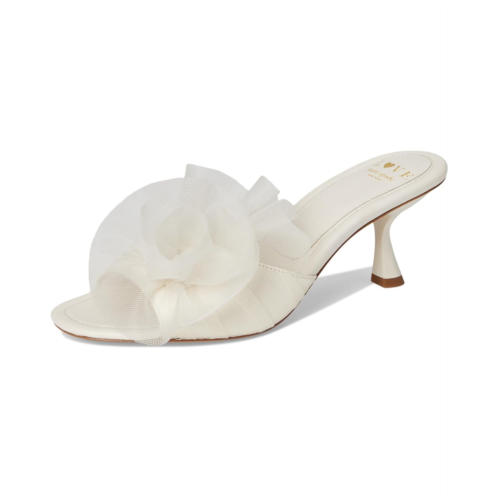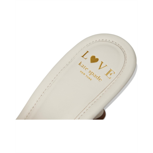 Up your footwear game adding this Kate Spade New York Flourish slip-on to your collection. It has leather upper with a 3D flower strap and slide on style. Lined with leather the slip on features open toe, leather insole and wedge platform.
