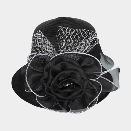 [US] FASHNZFAB flower mesh accented organza dressy hat