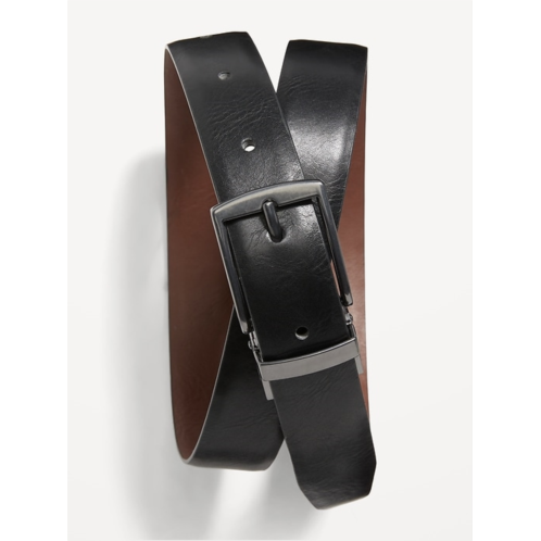 - Reversible faux-leather belt is black on one side and dark brown on the other.