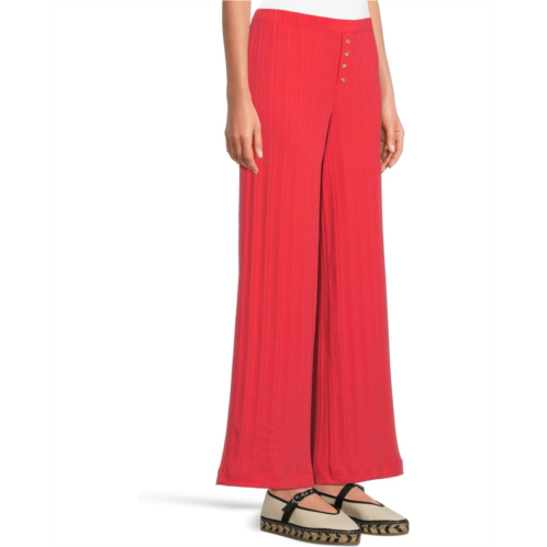 - The Faherty Paradise Pointelle Pants feature an elastic waistband for pull-on ease and a faux button closure at the center front for a polished touch. The wide-leg design flows with relaxed movement.