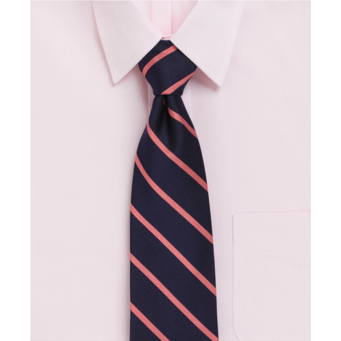 The classic Rep tie dates to the early 20th century when Britain donned their regimental ties with left-to-right stripes to represent heart to sword. They quickly caught on with the boarding school and social club set. And in 1902 we Americanized the style by switching the direction of the stripes in a nod to every-man democracy. Today the BB#3 pattern made from silk expertly woven in Italy, is an enduring classic having graced the collars of our biggest pop-art stars and presidents for over a century.