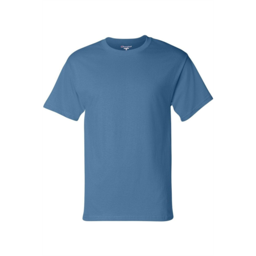 6 oz./yd, 100% cotton. Ash is 99/1 cotton/polyester . Light Steel is 90/10 cotton/polyester . Charcoal Heather is 60/40 cotton/polyester . Shoulder-to-shoulder taping. Double-needle stitched sleeves and bottom hem. Tag-free neck label. Champion C logo on left sleeve.
