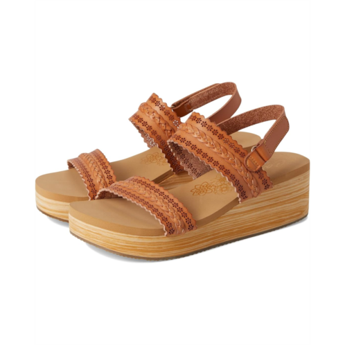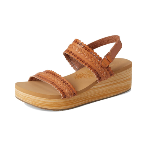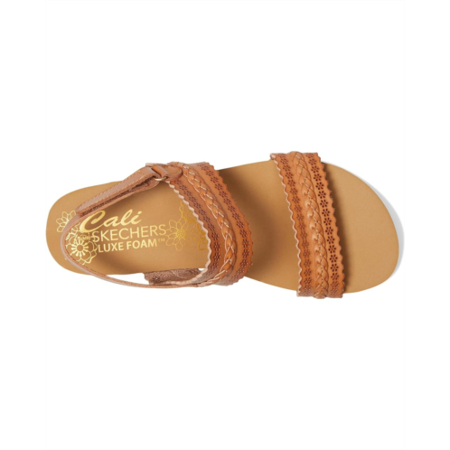 Spend the weekend in style with no compromise on comfort wearing SKECHERS Summers - Coastal Stroll Sandals. The open-toe vegan sandals are designed with a textured knit upper with a stacked wedge-heeled midsole, synthetic rubber lining, and luxe foam cushioned footbed. The slingback strap ensures a secure fit.