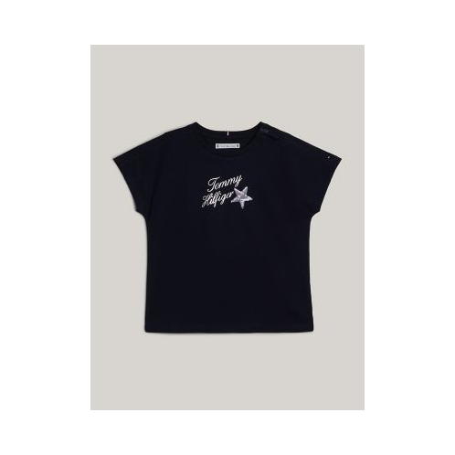 Tommy Hilfiger girls' T-shirt. Add a touch of twinkle to parties and playdates in this T-shirt, made from a soft cotton blend finished with sequin star detailing. Part of our Adaptive Collection, designed for ease of dressing in classic Tommy style.