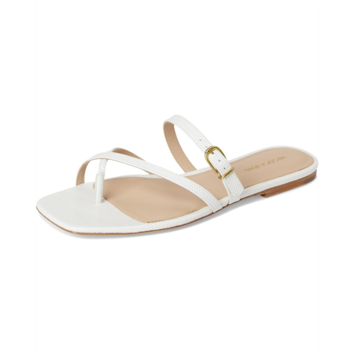 The Veronica Beard Marthe is a slip-on silhouette with an adjustable buckle at the ankle strap. With an open square toe, the footwear features leather upper and lining construction.