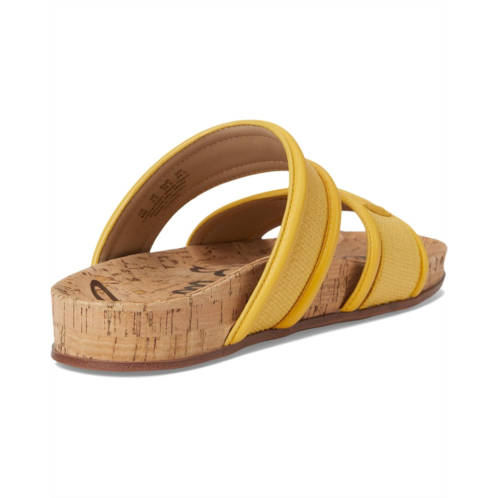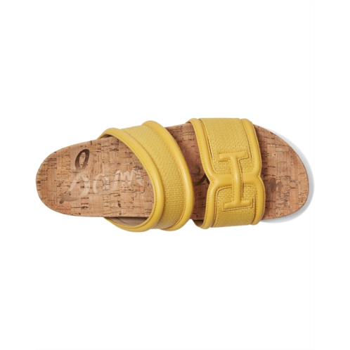 Go beyond the beach with these city savvy double-banded basketweave slides with chunky piped trim and bit detail. These slip-on style sandals offer a round open toe silhouette, crafted from a leather upper, polyurethane lining and a faux leather insole.