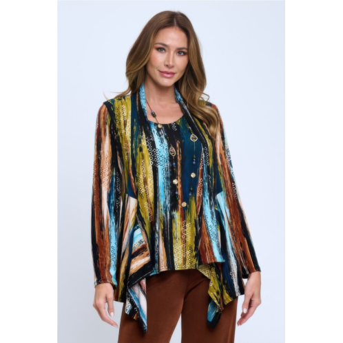 The BNS Mid Cut Jacket is a versatile layering piece designed for effortless style. Its draped silhouette and mid-cut length add polish to any outfit. Featuring a printed design and wrinkle-free, stretchable fabric, this jacket combines comfort with fashionable appeal. it is perfect for casual wear, work outfits, or travel.