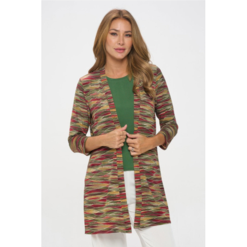 The HIT Duster Jacket adds dimension and drama to any look. Made with a smooth stretch blend, this printed jacket offers a breezy open front, ideal for layering over tanks or dresses. Lightweight and comfortable, it’s perfect for transitional seasons or when you want to add polish without effort.