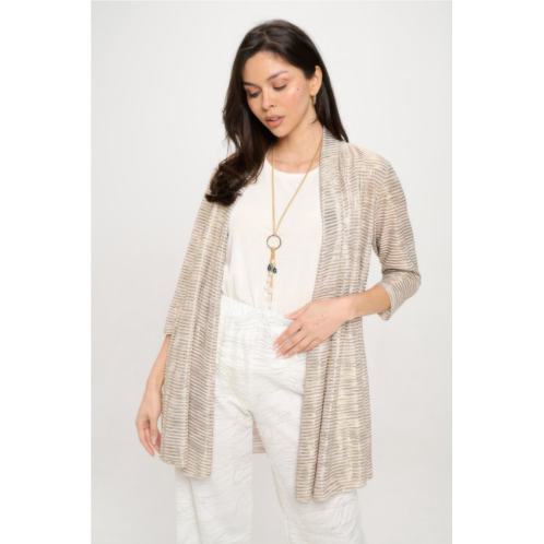 The Princess Jacket offers versatile elegance with a lightweight draped silhouette. Featuring quarter sleeves and a foil-printed design, it adds a stylish layer to any outfit. Crafted from a soft stretch fabric, this jacket is breathable, comfortable, and perfect for pairing with both casual and dressy looks.