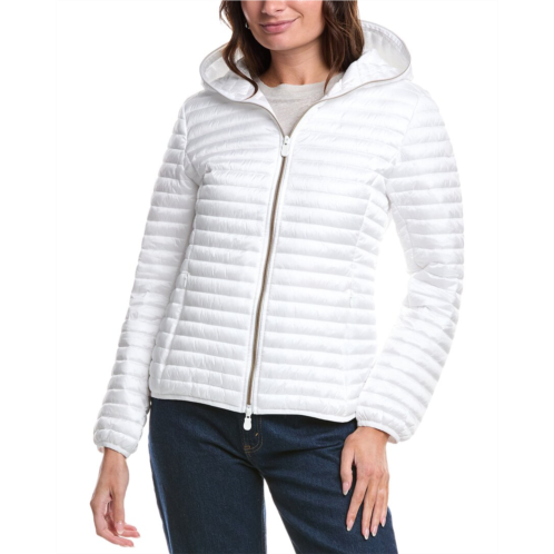 Introducing the Save The Duck Lightweight Jacket, a must-have outerwear piece for women. This hooded jacket features a sleek white color with a zipper closure and two zippered front pockets for added convenience. Made from 100% Nylon, this lightweight jacket is filled with 100% Polyester for ultimate warmth and comfort. The jacket measures approximately 25 inches from shoulder to hem and is designed for a flattering fit. Whether you're running errands or heading out for a hike, this Save The Duck jacket is the perfect choice. Machine washable and imported, this jacket is both practical and stylish. Don't miss out on this versatile and chic addition to your wardrobe!