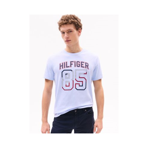 Tommy Hilfiger men's T-shirt. Made from lightweight cotton jersey, known for its breathability and stretch, our comfortable crewneck tee is cut in an easy fit and finished with our Hilfiger 85 logo.