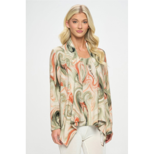 Layer up in style with this mid-cut print jacket, designed with an open front and draped silhouette for an effortlessly polished look. The neutral-toned print pairs beautifully with solid or coordinating tanks, offering a versatile option for work or weekend wear. Crafted with a touch of stretch, it moves with you for all-day comfort. A lightweight layer that adds refinement without the bulk.