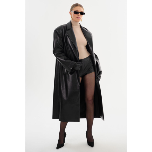 The JANELLE Oversized Recycled Leather Coat is an unparalleled showstopper, radiating cool-girl appeal and modern sophistication. Crafted from luxurious recycled leather, this coat features an oversized silhouette that drapes effortlessly, striking the perfect balance between relaxed and refined. Its bold design makes it the ultimate statement piece, transforming any outfit into a fashion masterpiece. Pair it with the ANNAISE Leather Hot Shorts for an unforgettable ensemble, or style it with denim for an impeccably chic look.
