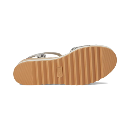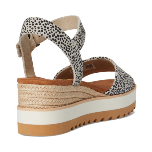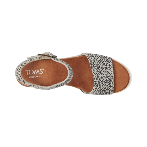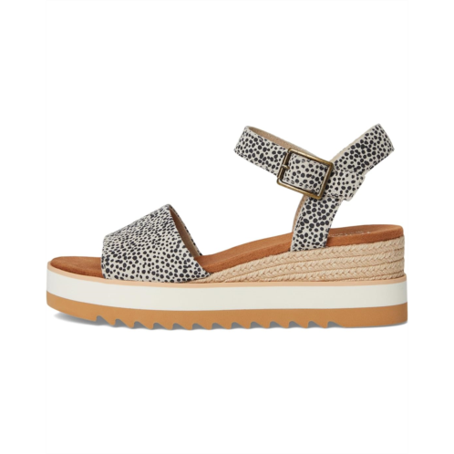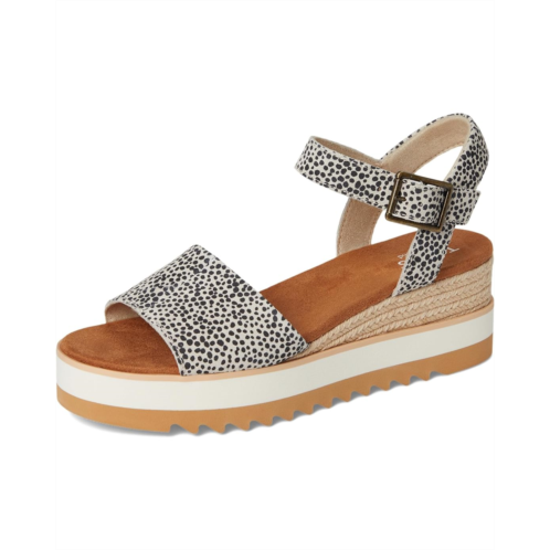 The TOMS Diana Sandal is your go-to for chic, all-day wear with a mid-height platform wedge that adds just the right amount of lift. Crafted with a sleek leather upper and soft polyester lining, it features an ankle strap buckle closure for a secure fit. The Custom CloudBound foam insoles cushion every step, while the lightweight rope-wrapped midsole and EVA outsole with sawtooth detailing provide flexibility and traction. Finished with a PU insole and durable rubber outsole, this open-toe beauty blends fashion and function for any occasion.