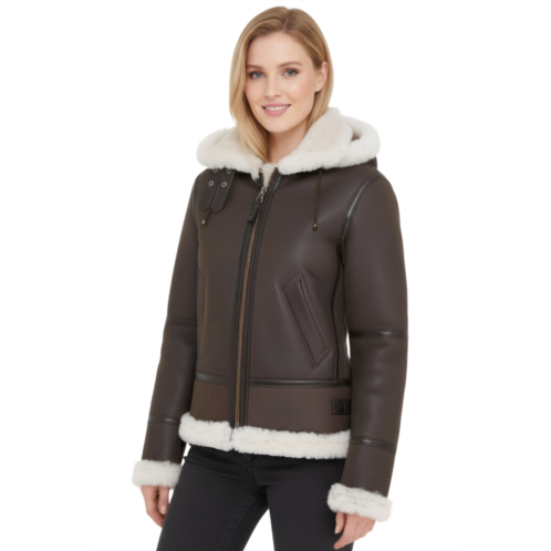 [US] Infinity Leather female creck brown hooded sheepskin flying leather jacket-orford