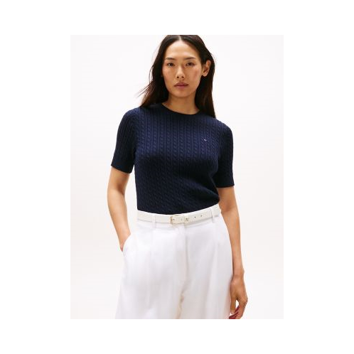 [US] TOMMY HILFIGER Short-Sleeve Cable Knit Sweater