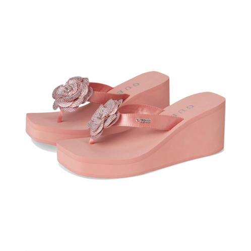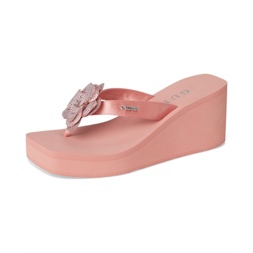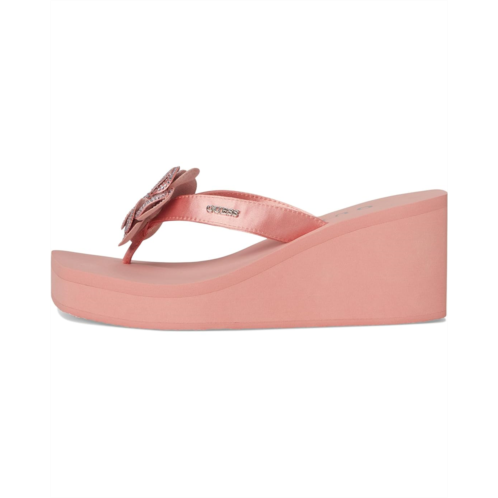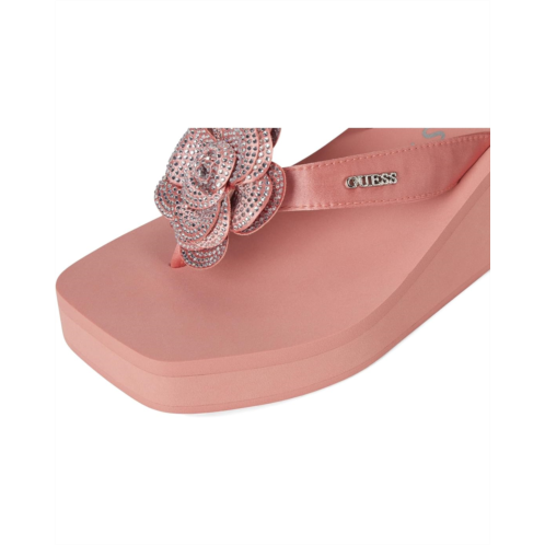 A classic Guess beach style, the GUESS Damani are lightweight EVA wedge heels. They are made of a rubber insole and polyurethane lining for added comfort. These heeled sandals are a stylish slip-on summertime fave featuring a rhinestone embellished flower detail for a stylish appeal.