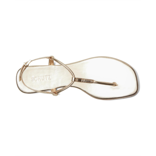 Glamorize in metallic gleam wearing the Schutz Elsha Sandals. The square toe thong features metallic leather upper with buckle adjustable slingback strap closure and toe-post strap for a comfortable hold.