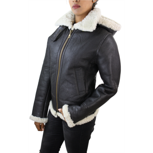 [US] TruClothing aviator hooded shearling sheepskin jacket