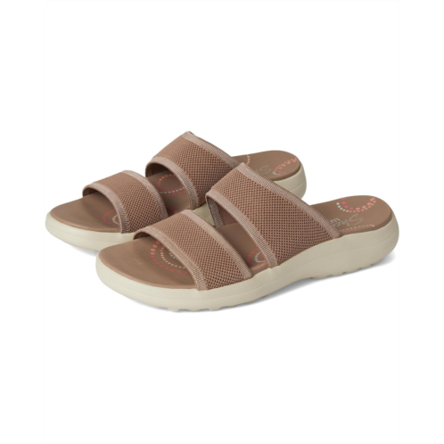 Long-lasting comfort combines with effortless style in the SKECHERS Sporty Slim sandals. Machine washable and water-resistant, these sandals feature a synthetic and soft Stretch Fit fabric upper with an adjustable strap and leather lining. The patented Skechers Arch Fit contoured footbed with podiatrist-certified arch support molds to your foot to reduce shock and increase weight dispersion. Crafted with 100% vegan materials, these slip-on sandals are perfect for your everyday wear.