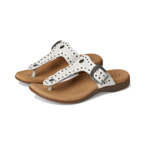 With lovely embroidery, delicate rivet, grommet detailing, and an antiqued adjustable buckle, the Taos Footwear Flash sandals have just enough bling to compliment any outfit! They feature a slip-on style and Soft Support footbed with amazing arch support and a cooling Recovery Foam microfiber-covered polyurethane insole. These T-strap sandals are made of a full-grain leather upper and microfiber lining. These sandals are so comfortable you'll never want to take them off.