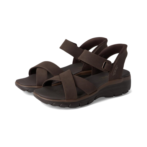 Enjoy sunny-weather comfort with signature comfort in the SKECHERS Easy Going - Somewhere Sunny. This casual strappy sandal features a vegan leather upper with adjustable hook-and-loop strap closures and a cushioned Yoga Foam footbed.