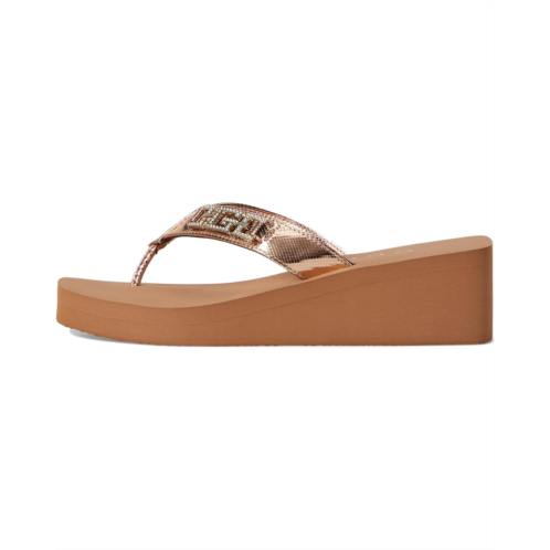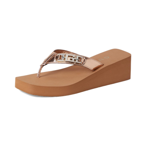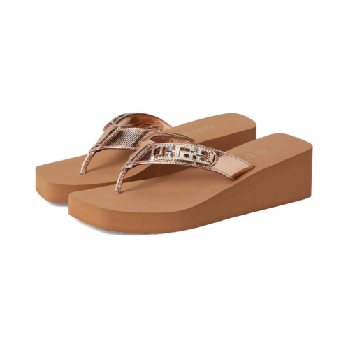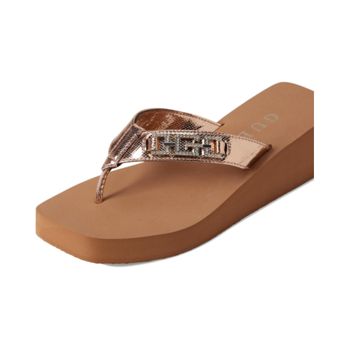 The GUESS Elowen delivers a classic EVA wedge at just the right height. The metallic thong straps are finished with signature hardware detail that enriches this fashion forward lightweight, slip-on wedge.