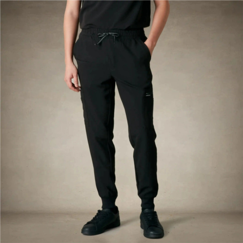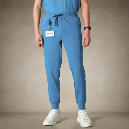 Meet your new favorite scrubs. The London Jogger Scrub Pants are made from a soft, stretchy blend of 72% polyester, 21% rayon, and 7% spandex, giving you all-day comfort that moves with you. The 4-way stretch fabric is breathable, moisture-wicking, anti-microbial, and anti-wrinkleso you stay cool, fresh, and polished no matter how long your shift runs. Designed with a modern, athletic fit and ribbed ankle cuffs, these joggers bring a sharp look to your everyday uniform. And with 11 pockets (including 2 trouser pockets, 2 back welt pockets, and a tech pocket), they’re as functional as they are stylish.