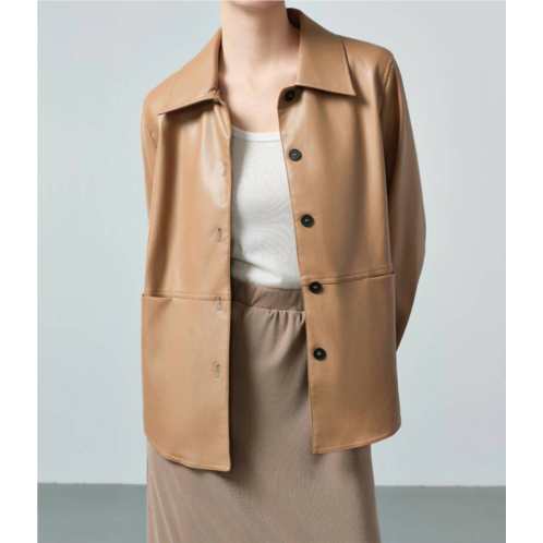 [US] Active Basic faux leather button up shacket in camel
