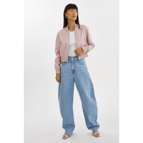 Elevate your outerwear game with the KORDELLA Reversible Leather Bomber Jacket. Featuring a reversible metallic foil interior, this statement jacket offers two chic looks in one. Leather ribbing at the neckband, bottom hem band, and sleeve cuffs add luxe dimension and detail. Style with high-waisted jeans and a simple white tee for an effortlessly chic casual look, or layer over a slip dress for a night out.