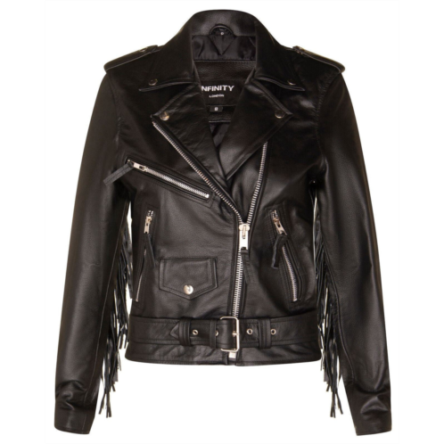 [US] Infinity Leather womens black fringe tasseled biker jacket - seville