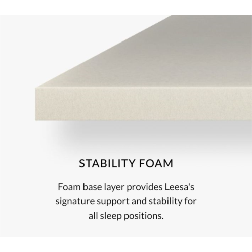 - SIGNATURE SUPPORT: Foam base layer provides Leesa's signature support and stability for all sleep positions.