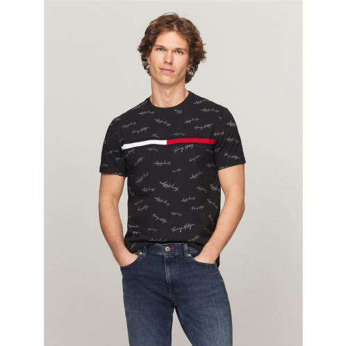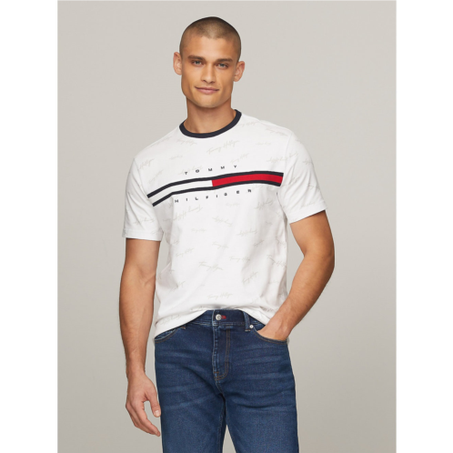 Tommy Hilfiger men's T-shirt. Made from soft-washed cotton, this classic T-shirt features our embroidered flag logo at the chest and allover Tommy signature print. Material - 100% Cotton.