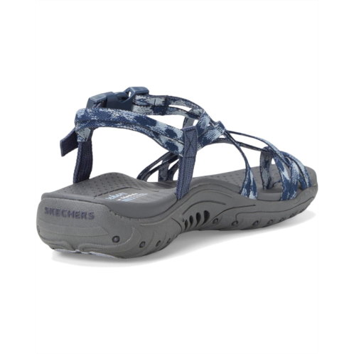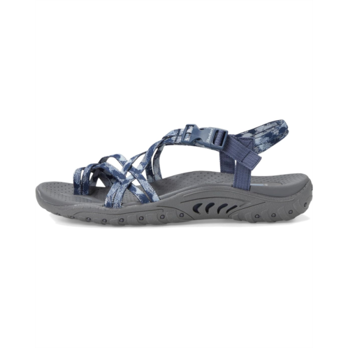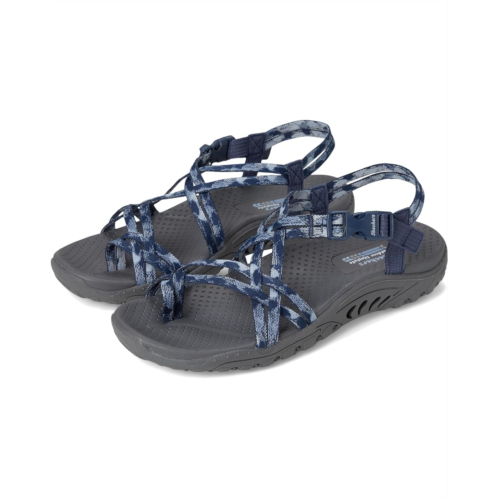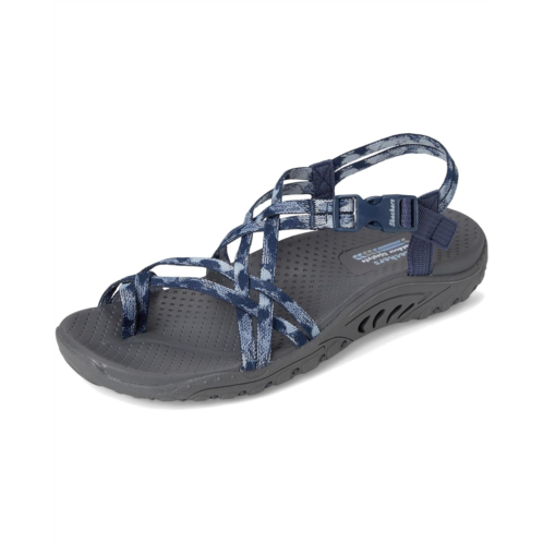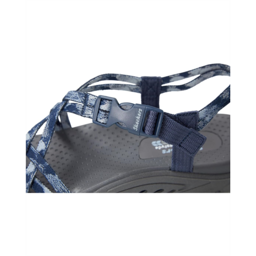 Ease back with style and stretchable comfort in SKECHERS Reggae - Positive Space. This vegan sandal features a woven Stretch Fit strappy upper with a quick closure buckle, a leather lining, an EVA insole, and a lightweight & supportive shock-absorbing Reggae midsole. The strappy toe thong sandals come with Skechers Hands Free Slip-ins for an easy fit and exclusive Heel Pillow that holds your foot securely in place.