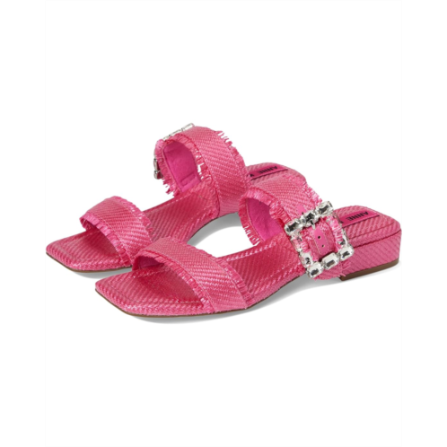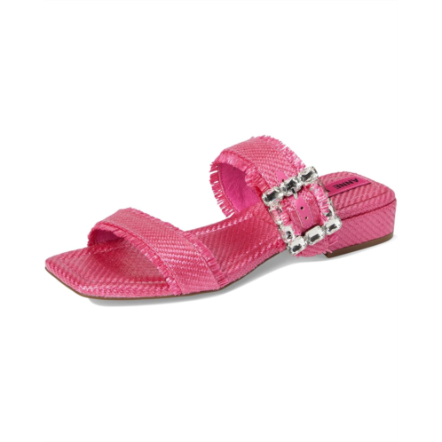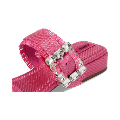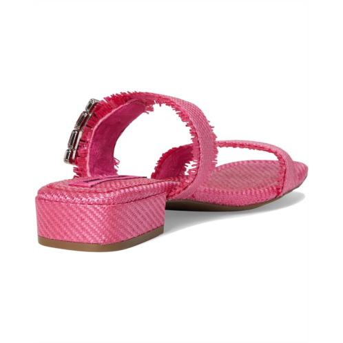 The Anne Klein Lillie slip-on sandal is perfect for elevating casual looks or adding a polished finish to dressier outfits. This two-banded open-toe sandal features a chic square toe shape and a dazzling crystal buckle detail that adds just the right amount of sparkle. The frayed edges lend a trendy, fashion-forward touch, while the low block heel ensures comfort without compromising on style.