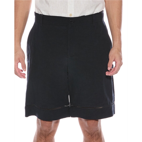 Elevate your summer style with the SIMKHAI Dean Linen-Blend Short. This timeless piece is crafted from a luxurious blend of 57% linen and 43% cotton, ensuring both style and comfort. The midnight color adds a touch of sophistication, while the ladder stitch trim and four-pocket styling provide a classic and versatile look. The inseam is approximately 9 inches, ideal for a modern and tailored fit. Designed with belt loops and a zip fly with button closure, these shorts are perfect for a casual day out or a stylish evening event. Whether you pair them with a crisp white shirt or a relaxed polo, these shorts will effortlessly elevate your wardrobe. Imported and dry clean only, the SIMKHAI Dean Linen-Blend Short is a must-have addition to any fashion-forward man's closet.