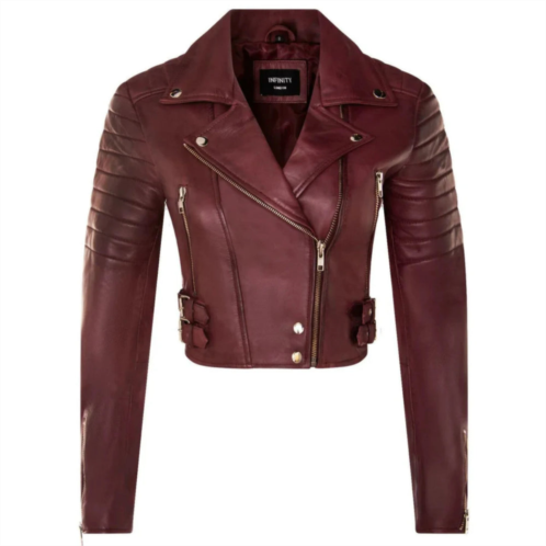 [US] TruClothing real leather short cropped length brando style biker jacket