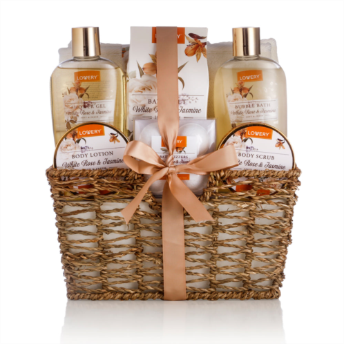 [US] Lovery home spa gift basket - white rose & jasmine - luxury 11 pc bath & body gift