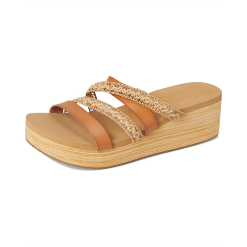Experience easy-wearing comfort and a accentuate a stylish vibe wearing SKECHERS Summers Sandal. The slip-on style strappy sandal comes with a faux leather upper, synthetic rubber lining, and a Luxe Foam cushioned comfort footbed along with a lightweight midsole. The wedge heel elevates the style and the flexible traction rubber outsole ensures added stability while walking.