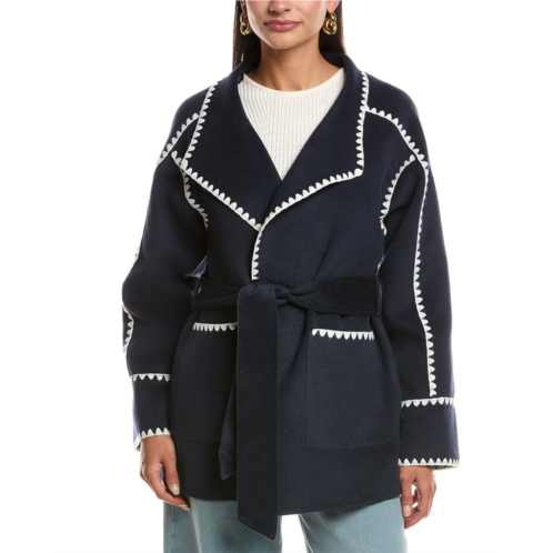Introducing the Stella + Lorenzo Trench Coat, a stylish addition to your outerwear collection. This navy trench coat features a classic design with wing lapels, two front pockets, and contrast stitching for a modern touch. The self-tie belt at the waist allows for a customizable fit, while the open front adds an effortless element to your look. Made from a medium-weight blend of polyester, viscose, and spandex, this coat is perfect for transitional weather. Whether you're running errands or heading to the office, this imported trench coat is sure to elevate your ensemble. Available in sizes ranging from XS to XL, this coat is approximately 29 inches from shoulder to hem. Pair it with your favorite outfit for a timeless and chic look. Don't forget - dry clean only for lasting wear.