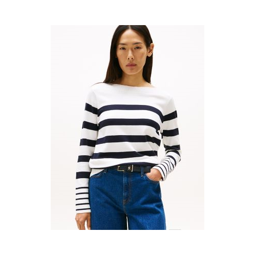 Tommy Hilfiger women's sweater. Our premium cotton boatneck sweater takes on a soft, textured feel thanks to the wide-rib trim accents at the neckline, cuffs and hem.