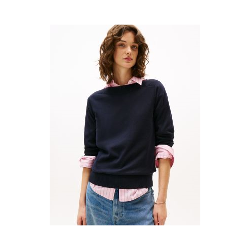 Tommy Hilfiger women's sweater. Our premium cotton boatneck sweater takes on a soft, textured feel thanks to the wide-rib trim accents at the neckline, cuffs and hem.