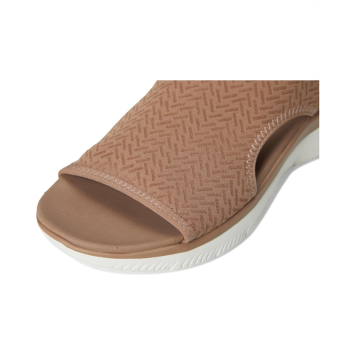 Ease back with style and stretchable comfort wearing the SKECHERS Summits - Outta Here sandals. The textured Stretch Fit neoprene upper features a H-band design and an all-over chevron print. These athletickorea sandals are made of a Yoga Foam cushioned footbed, lightweight shock-absorbing midsole, and leather lining. Machine washable and durable, these slingback sandals are crafted with 100% vegan materials.