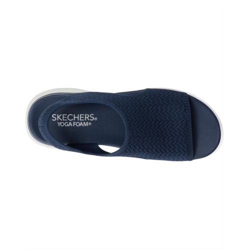 Ease back with style and stretchable comfort wearing the SKECHERS Summits - Outta Here sandals. The textured Stretch Fit neoprene upper features a H-band design and an all-over chevron print. These athletickorea sandals are made of a Yoga Foam cushioned footbed, lightweight shock-absorbing midsole, and leather lining. Machine washable and durable, these slingback sandals are crafted with 100% vegan materials.