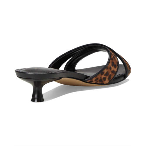 The Marc Fisher LTD Traceyly dress sandal is a fashion forward must-have for the season. Featuring a slip-on silhouette, a kitten heel and leopard patterned crisscross straps, this sandal will never go out of style! These are crafted with a hair calf or leather upper and man-made lining.