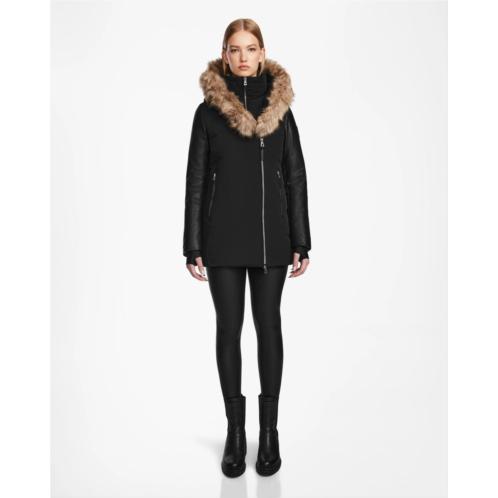 [US] RUDSAK aurore womens fitted short down parka with vegan leather sleeves
