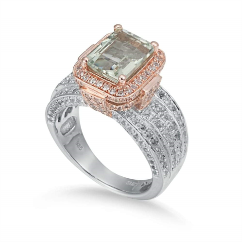 [US] Suzy Levian two-tone sterling silver 5.18 cttw green amethyst ring