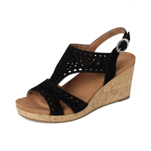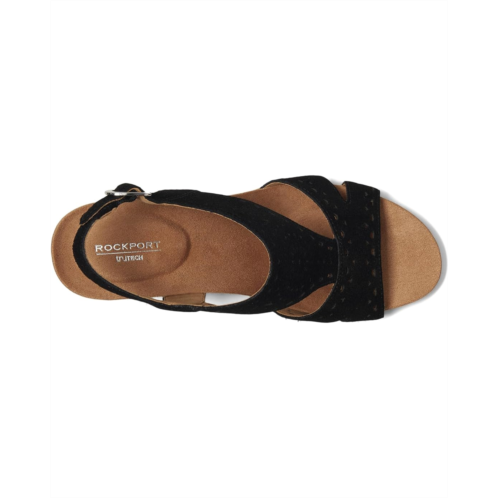 The Rockport Belis is a must-have for your wardrobe, blending fashion and function with ease. Designed with a luxe suede upper, an open-toe silhouette, and an adjustable buckle slingback strap, this high wedge elevates any outfit while ensuring a secure fit. The cushioned insole and built-in arch support provide exceptional comfort, while truTECH technology absorbs shock with every step, keeping you light on your feet from day to night. A flexible synthetic rubber outsole enhances movement, making this wedge as practical as it is chic.