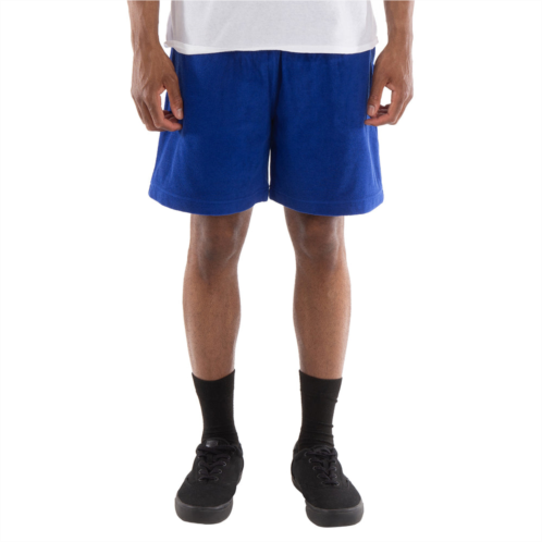 Burberry Men's Bottoms. Fashion category - Shorts. SKU - 8081240. Color - Knight. Burberry Elasticated Drawstring Shorts. This shorts features a Towelling finish with an elasticated drawstring waistband, two side slit pockets, and a rear patch pocket. 100% Wool. Made in Italy.