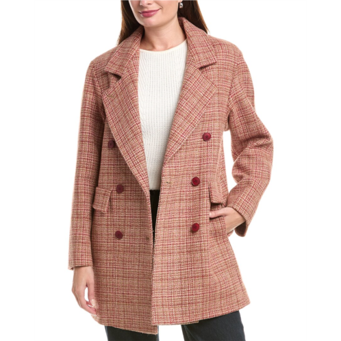 Introducing the exquisite 'FLEURETTE Double Breasted Wool Coat' in a luxurious Rosewood color. This timeless piece features a button front closure, making it the perfect addition to your outerwear collection. Crafted from 100% Wool shell and lined with 100% Acetate, this coat is not only stylish but also incredibly comfortable. With a length of approximately 34 inches from shoulder to hem, this coat is designed to flatter any silhouette. Dry clean only. Proudly made in the USA, this FLEURETTE coat is a must-have for the modern woman who values both style and quality.